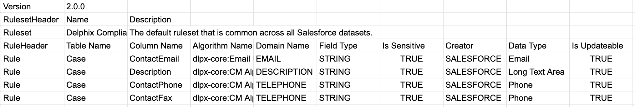 Rulesets can also be customized outside of the Delphix Compliance Services interface with tools like spreadsheet editors, then uploaded back. Please follow the steps below: