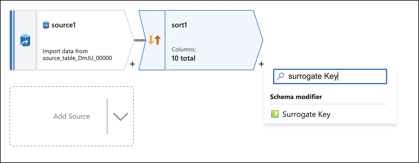 Click on the + to the bottom right of the sort box and add a Surrogate Key flow step.