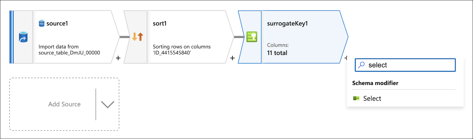 Click on the + to the bottom right of the surrogate key box and add a Select flow step.