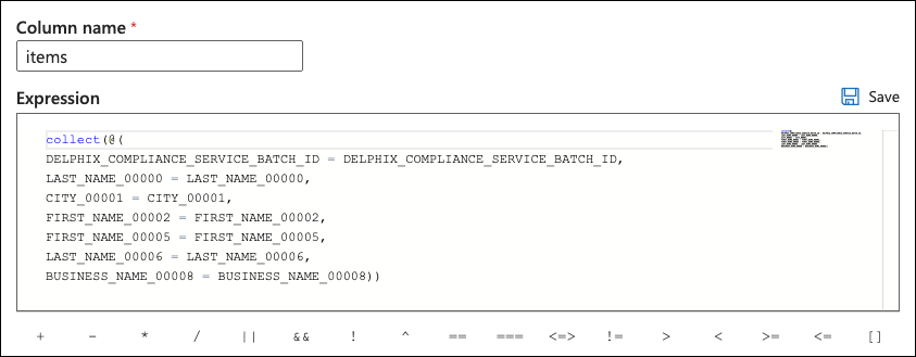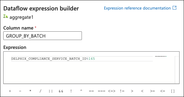 On the Group by tab, hover over the Select column… box and click on Open expression builder. Set the column name to GROUP_BY_BATCH and set the expression to DELPHIX_COMPLIANCE_SERVICE_BATCH_ID%<Number of batches>. The number set for this is dependent on the number of rows in the table, the number of columns being masked, and the length of the column identifier. The goal is to have enough batches so that the REST service calls have a body size smaller than 2 MBs.